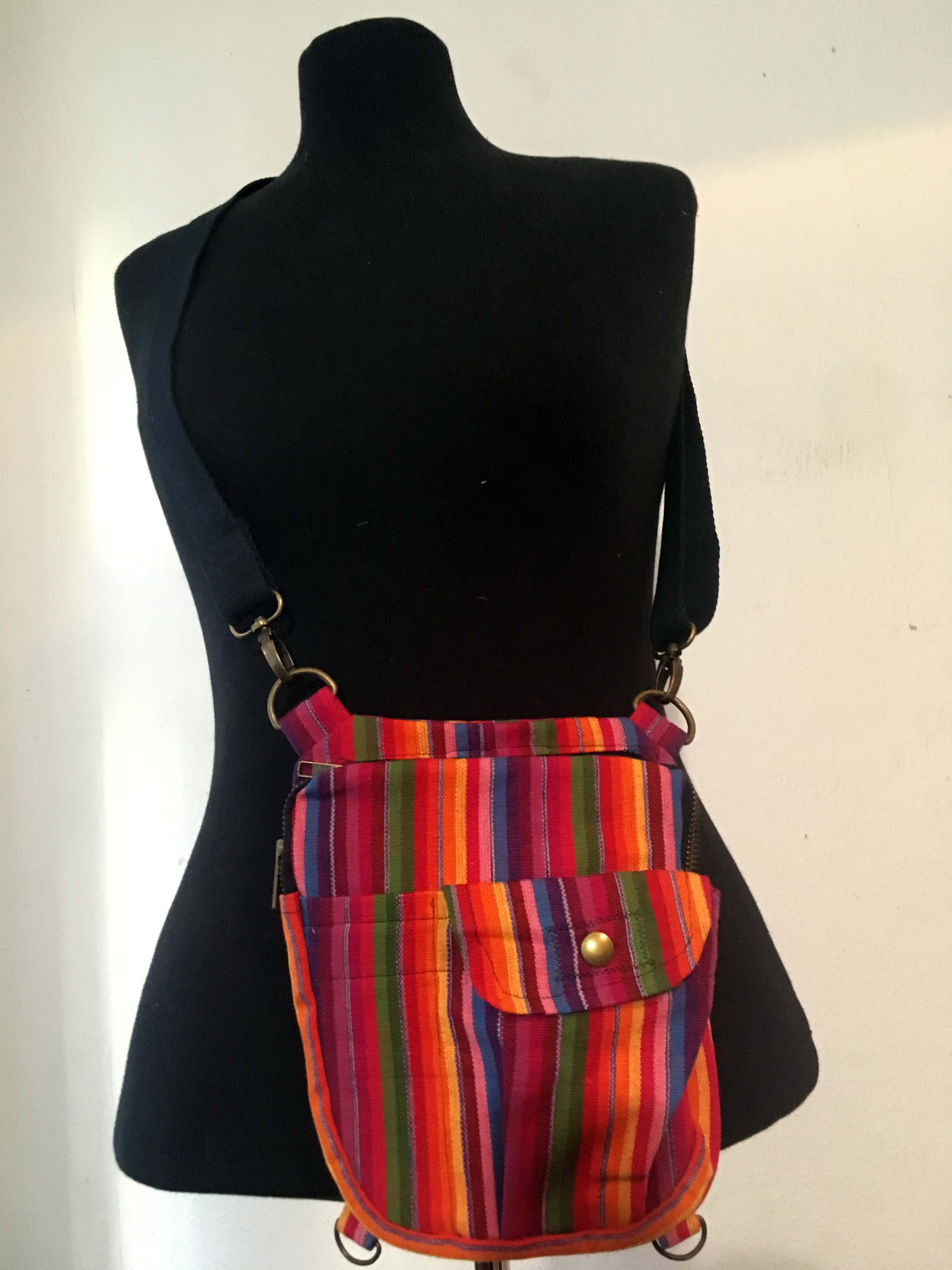 kleine Tasche mit bunten Webstreifen